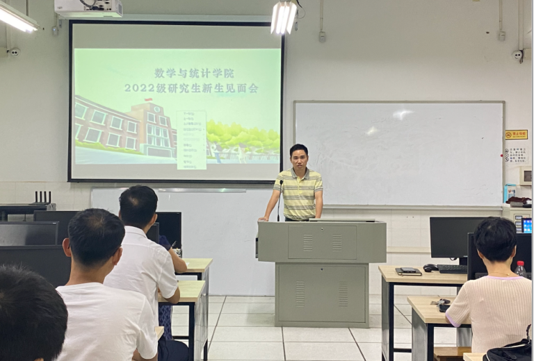 9月14日下午,数学与统计学院2022级研究生新生见面会在数学楼310教室举行。数学与统计学院院长李龙、副院长李浏兰、阳志锋,继续教育学院院长杨柳,及多位数学与统计学院老师参加了此次活动。